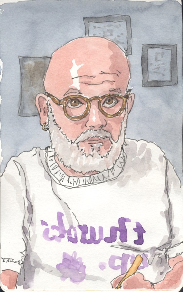 I’m also a guy who likes to draw with ink and watercolors and I have a sketchbook habit. I live in the Rio Grande Valley of Texas. There are lots of interesting things to draw here. I’ve drawn some of them. Some are making their way into my relief prints.