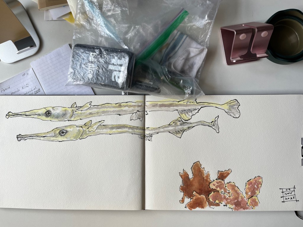 Good thing I had a very long sketchbook when I came across these two fishes at the zoo